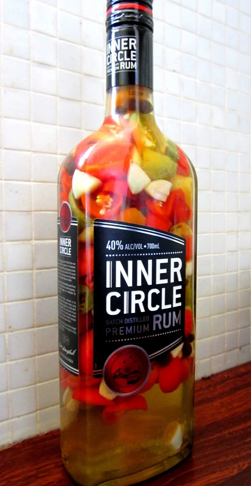 Before you make the sauce, you’ll need an old rum bottle, with a little bit of rum left in it. (You know that almost empty bottle of rum that your grandmother has in the back of her liquor cabinet? Yeah, steal that).